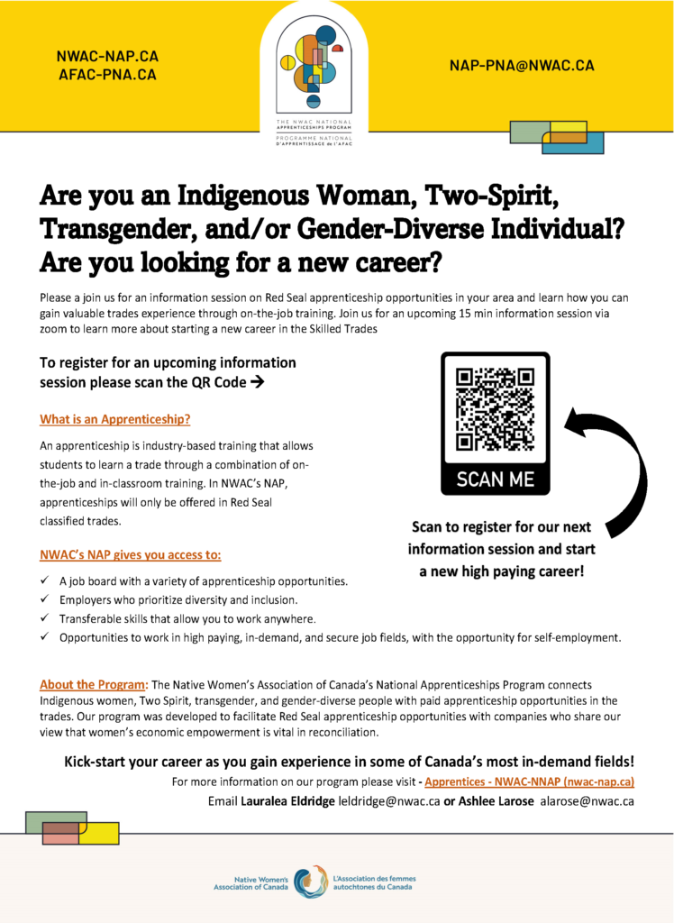 Are you an Indigenous Woman, Two-Spirit, Transgender, and/or Gender-Diverse Individual? Are you looking for a new career?