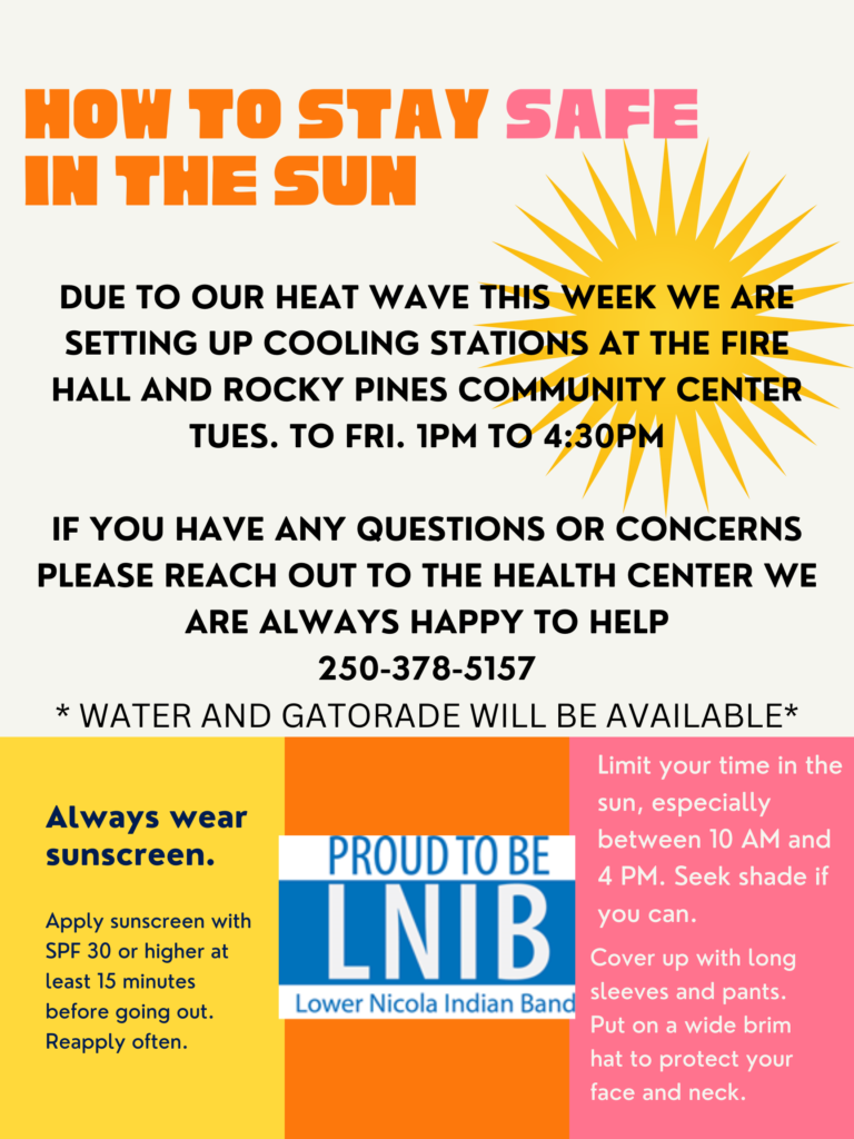 Cooling Stations are at the LNIB Fire Hall and Rocky Pines Community Center
